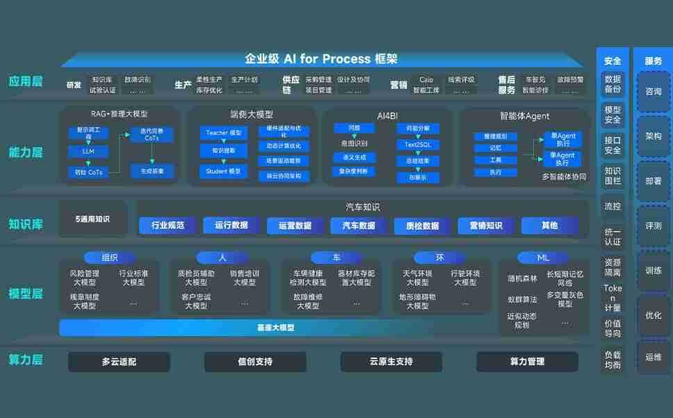z6尊龙问学智车解决方案是一套基于AI技术的汽车行业智能化系统,,覆盖从底层算力到顶层AI应用的全栈方案。。。。方案由算力层、、、模型层和应用层组成:算力层,,,方案支持多种一体机配置,,具备云端灵活部署、、、、多云适配以及动态优化计算资源的能力;模型层,,,z6尊龙问学平台版提供了企业级AI应用一站式构建与管理平台,,,支持基于后训练强化技术的汽车企业专属模型的训练、、、、评测和运营;应用层,,,,z6尊龙问学DeepSeek版提供包括超级员工、、、、智能招采、、、、智能营销、、、、智能客服、、、AI for BI等一系列解决方案,,,可助力汽车行业实现数字化转型,,,,让管理更智能、、、、响应更敏捷。。